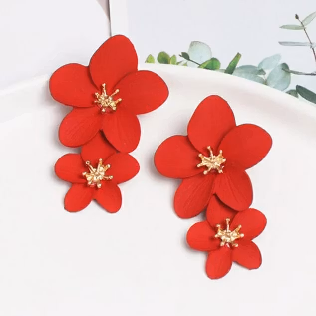 Fina örhängen i rött eller gult i form av blommor.