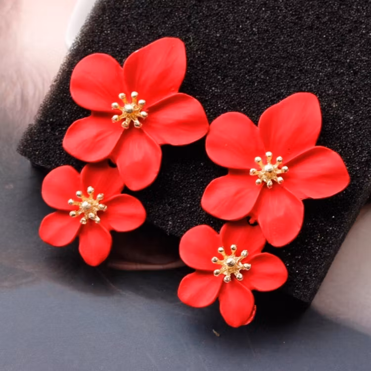 Fina örhängen i rött eller gult i form av blommor.