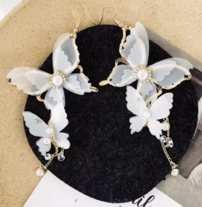 Örhängen SestreVita örhängen med fjärilar och pärlor.